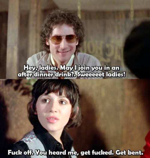 [1]: It is also important to note that Laurie is perhaps the most vocal of Thana’s coworkers. In the scene with the photographer, Laurie loudly and directly tells the man to “fuck off” and “get bent,” repeating it for good measure so he’ll take the hint. She does something to several catcallers at another point in the film. In this way, she’s the opposite of Thana, who cannot speak and is often at the mercy of others; Laurie speaks loudly and clearly against the culture around here, while Thana must result in violence.